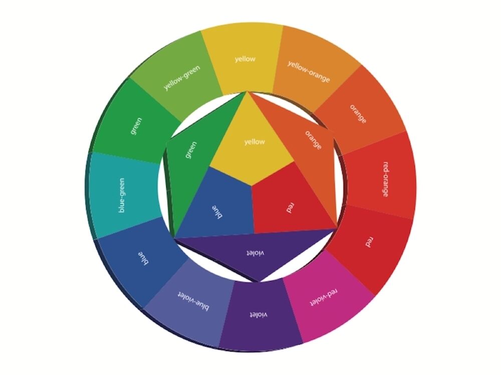 Pour les couleurs complémentaires, il vous suffit de prendre un cercle chromatique et d’observer la couleur à l’exact opposé de la roue. Le rouge et le vert sont des couleurs complémentaires, par exemple. Ainsi que le violet et le jaune.