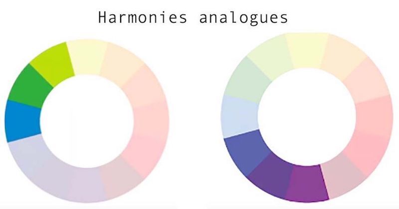 Au delà de cette simple combinaison, vous pouvez vous utiliser les 5 harmonies colorimétriques ci-dessous…