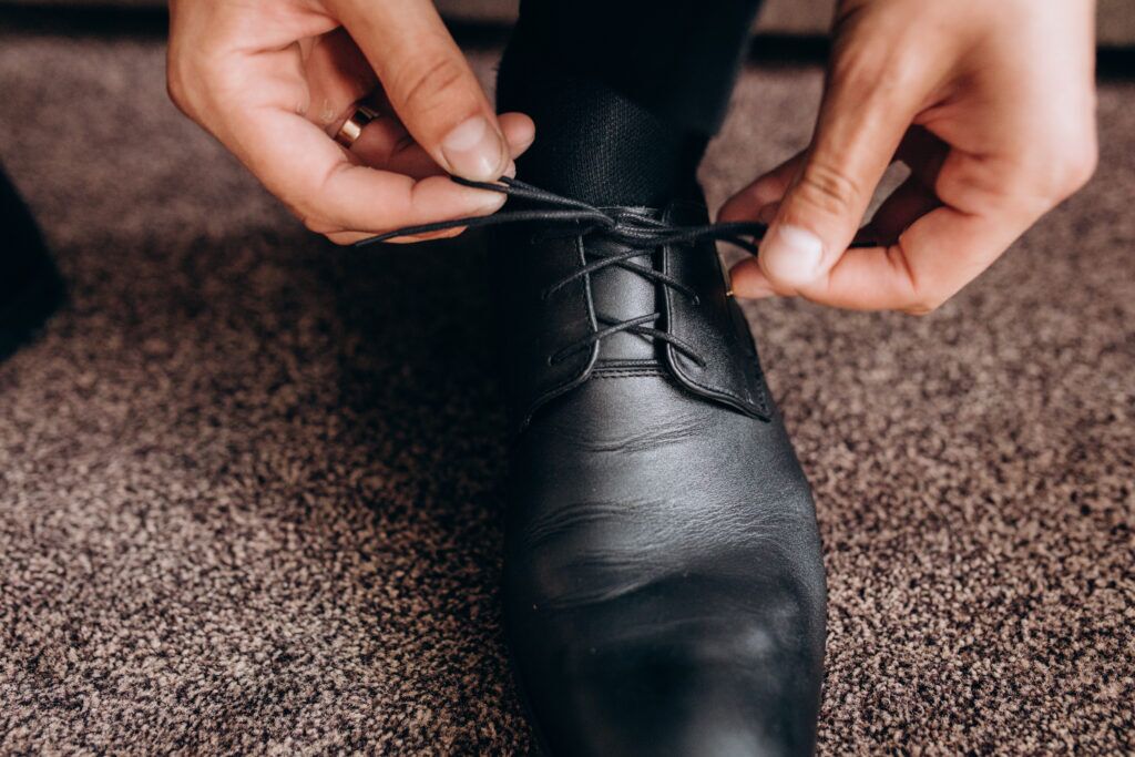 Parlons maintenant d’un autre élément très important : vos chaussures. Pour une tenue de ville pour homme, bannissez absolument la fantaisie ! Vos chaussures devront impérativement être en cuir, noires de préférence, et bien cirées.